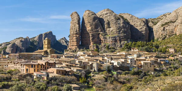 Use them in commercial designs under lifetime, perpetual & worldwide rights. Aerial view of aguero village. View of aguero village and los mallos mountains behind it, aragon, spain. There are two churches in the village. Agüero is a village and a municipality located in the province of huesca, aragon, spain.